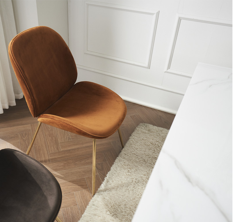 벨벳원단사용한 고급의자로 등을 편안하게 감싸주는