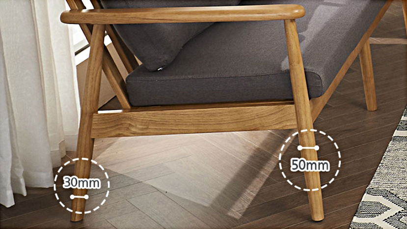 3인패브릭쇼파에 사용된 고무나무원목은