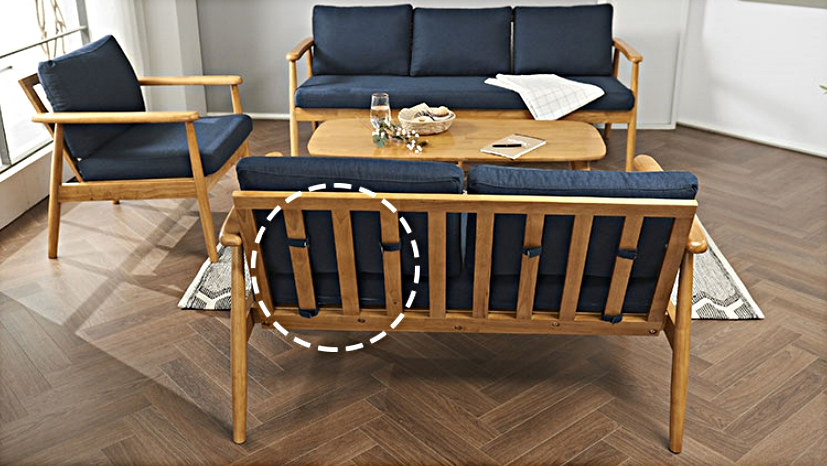 네츄럴한 고무나무 패브릭쇼파의 모서리 부분을