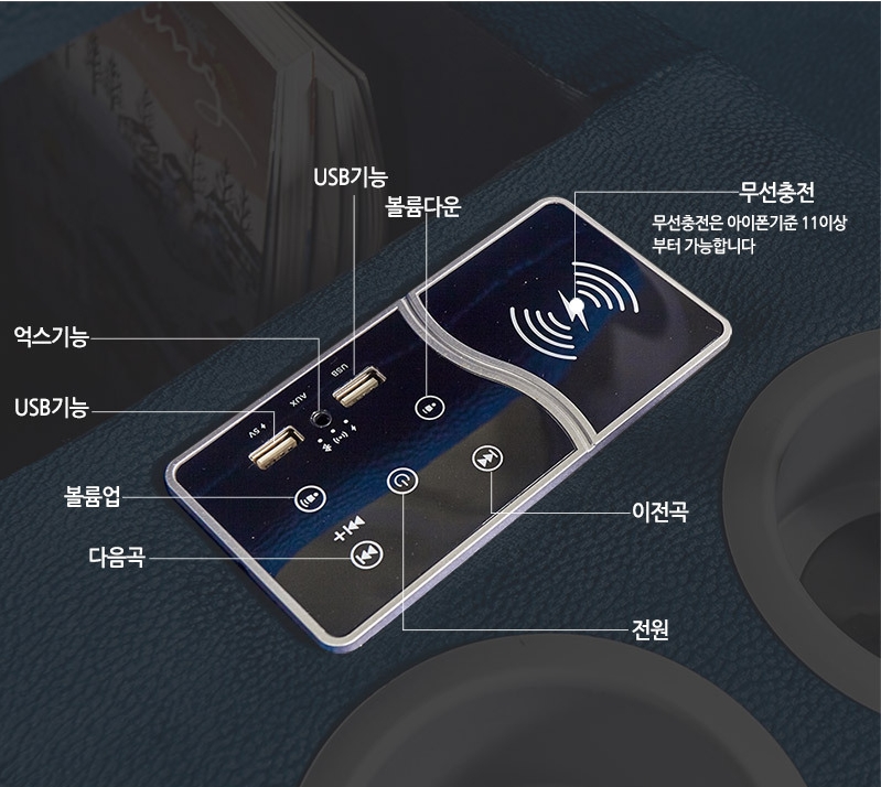 팔걸이 쪽에 있는 컵받침기능으로