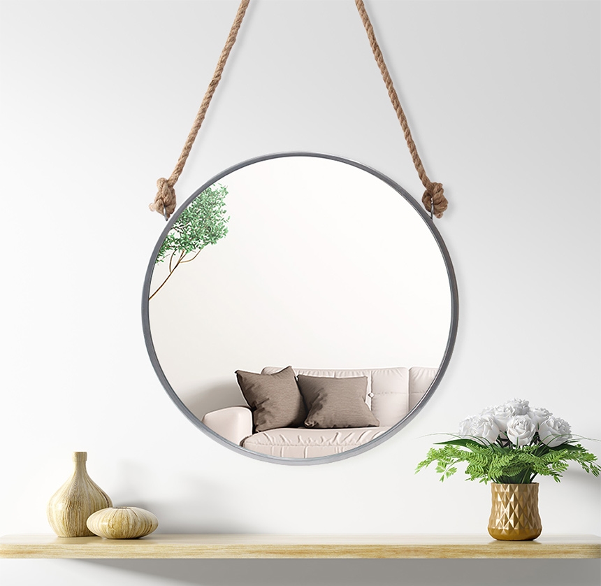 원형 거울은 집안의 한쪽 벽면에 인테리어 거울로