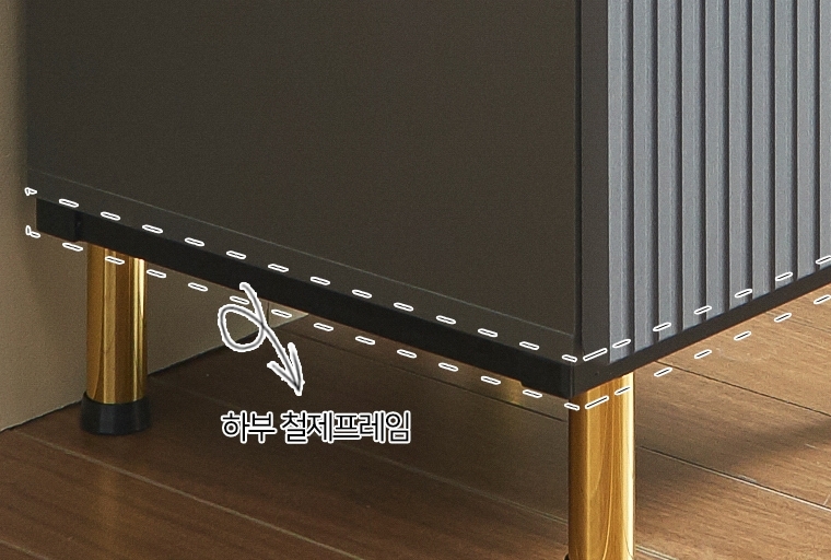 이 제품은 가구 하부에 철제 프레임을 덧대서