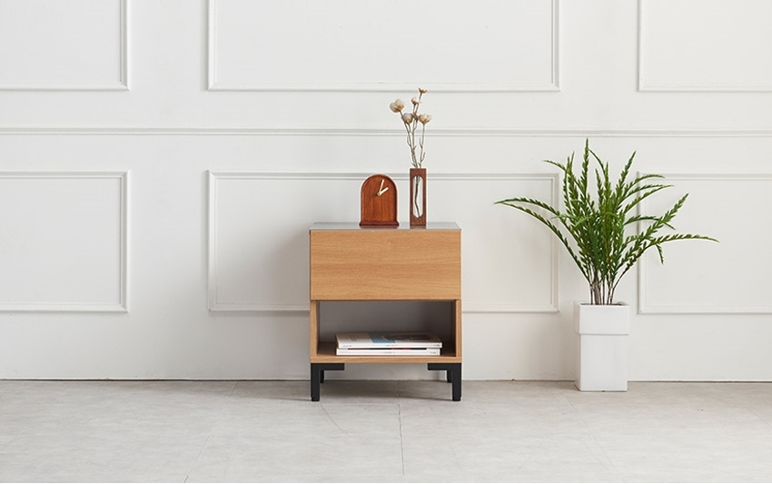 미니멀한 사이즈의 협탁의 상단은 서랍,
