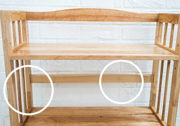 원목선반장의 옆면과 뒷면에는 받침대가 들어가게